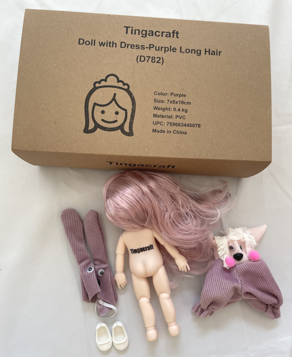 Tingacraft Doll with Dress Accessories-Purple Long Hair